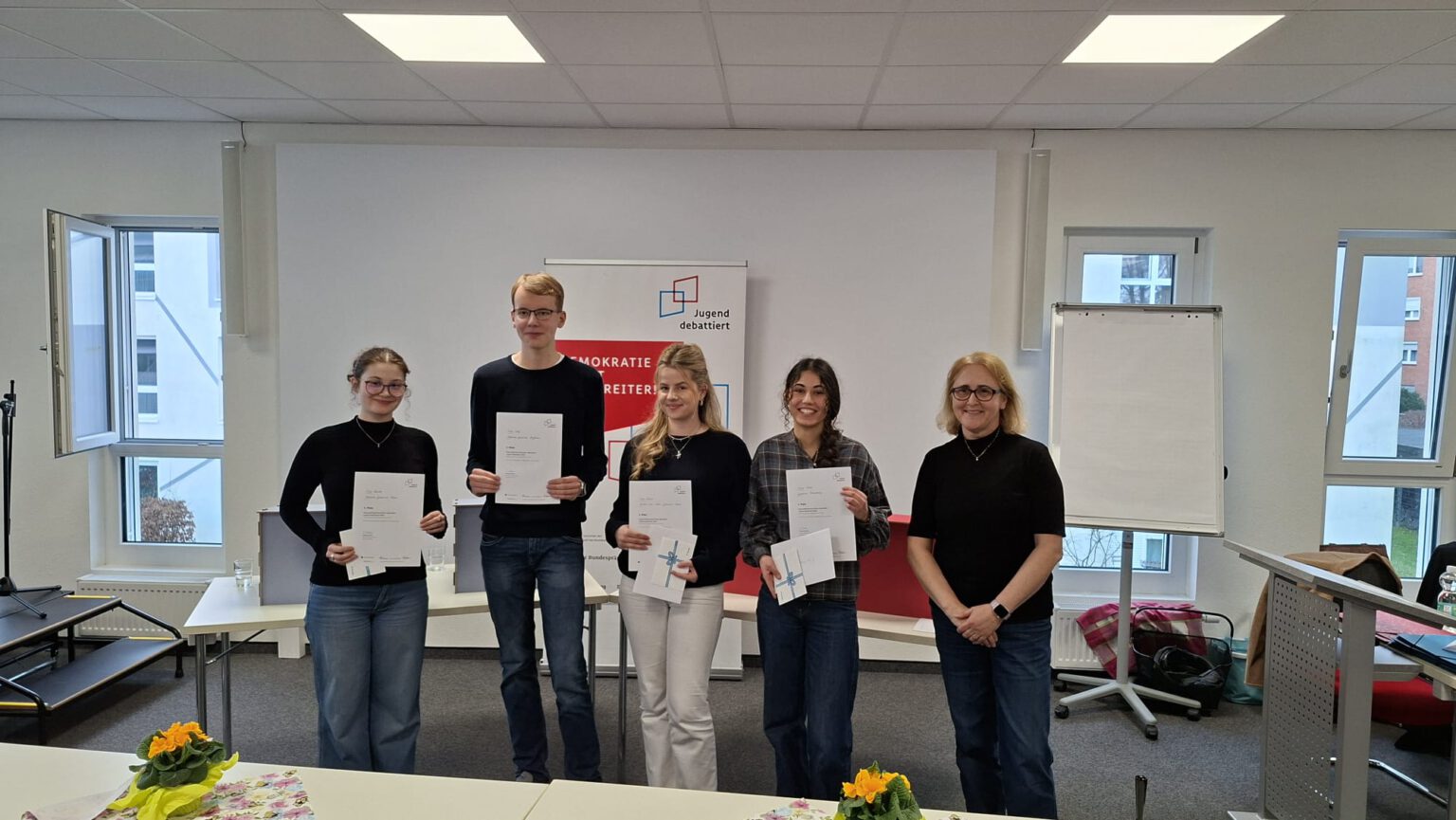 Wir gratulieren allen Teilnehmenden herzlich zu ihrer starken Leistung und ihrem Einsatz. Emma wünschen wir für den Landeswettbewerb im April viel Erfolg und weiterhin überzeugende Argumente!